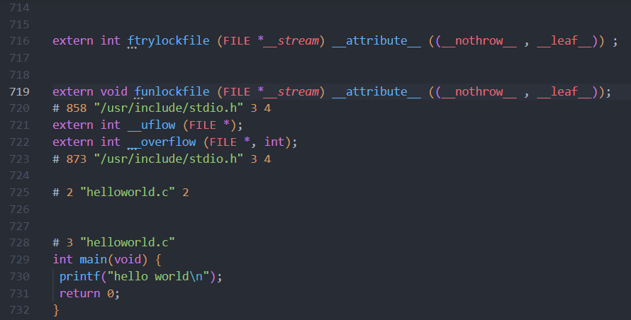 $ gcc -E helloworld.c -o helloworld.i